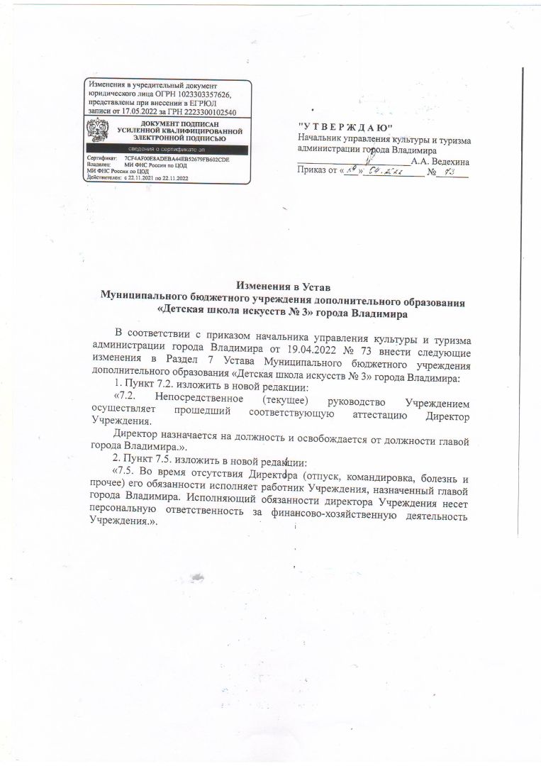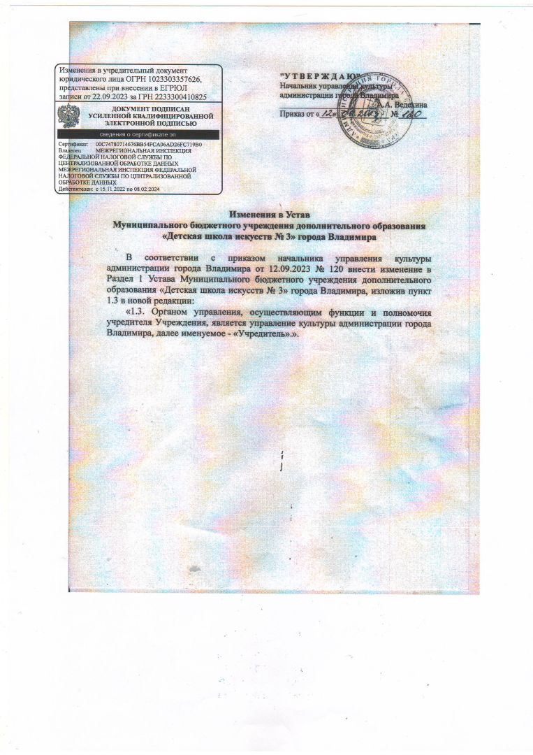 1.2. Изменения в Устав МБУДО "ДШИ № 3" г. Владимира
