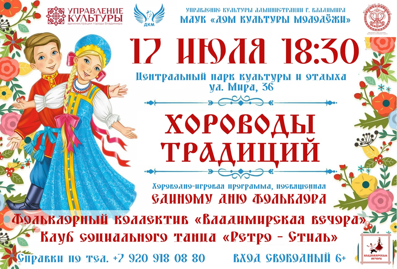 «Дом культуры молодежи» приглашает всех желающих в Центральный парк культуры и отдыха г.Владимира разделить с нами это событие.
