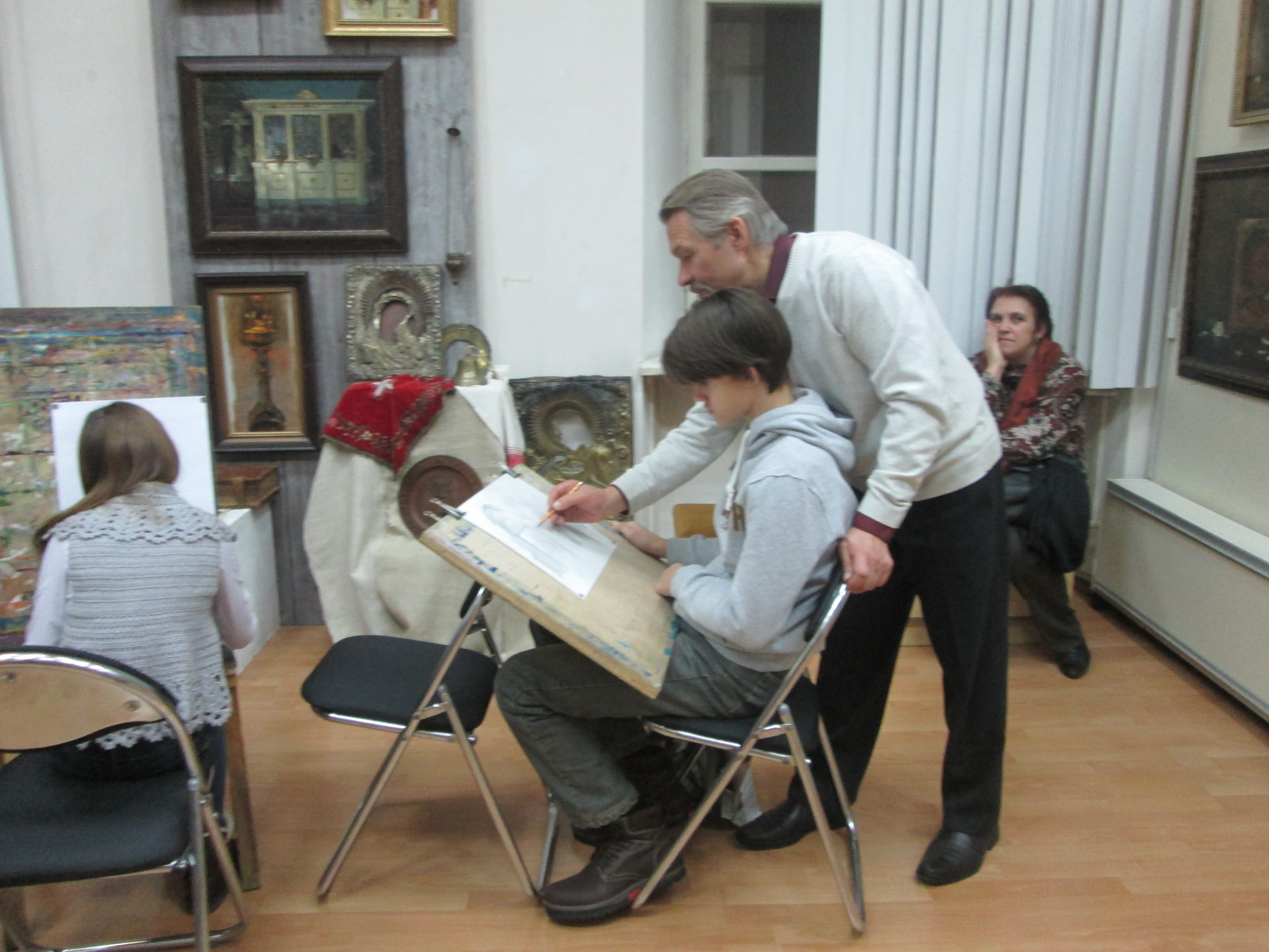4 ноября 2016 года в областном Центре изобразительного искусства с 19.00 до 21.00 прошла акция «Ночь музеев». В рамках этой акции заслуженный художник Российской Федерации Бычков В.А. провел мастер – класс по рисунку с обучающимися художественного отделения ДШИ №3 г.Владимира. В мастер-классе приняли участие:Ишанова Лиза, Моисеев Ваня, Шевченко Диана – преподаватель Нехаева И.И.; Мешалкина Саша – преподаватель Харитонова Г.Н.; Немкова Маша, Аристов Ваня – преподаватель Андреева В.Н.