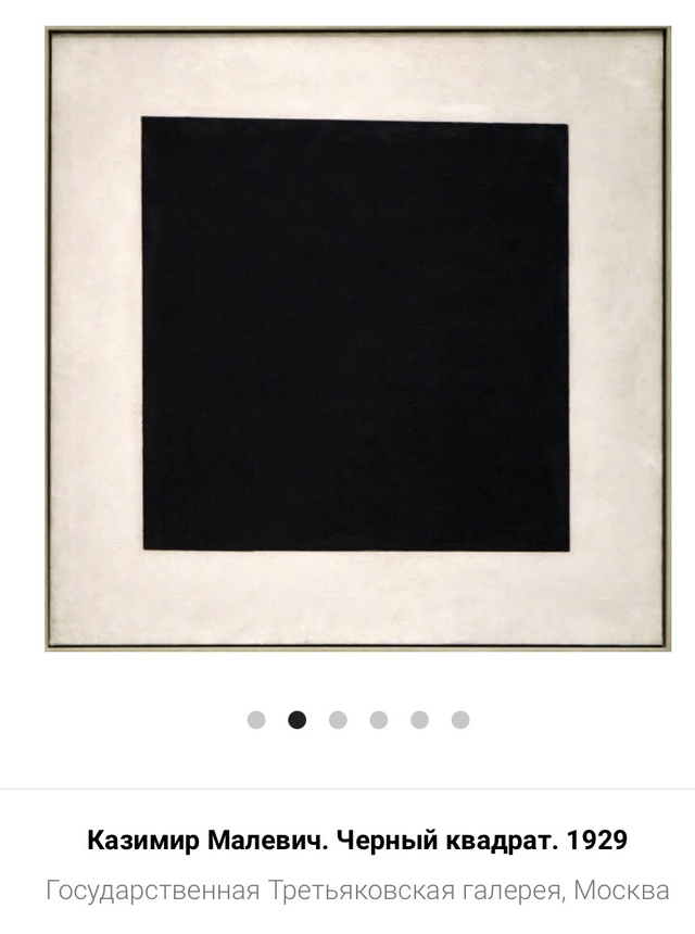 «Черный супрематический квадрат» Казимира Малевича стал первым беспредметным полотном в русской живописи. Исследователь авангардного искусства Андрей Сарабьянов назвал его «не только одной из самых знаменитых [картин] в ХХ веке, но и знаковым явлением в современном искусстве».