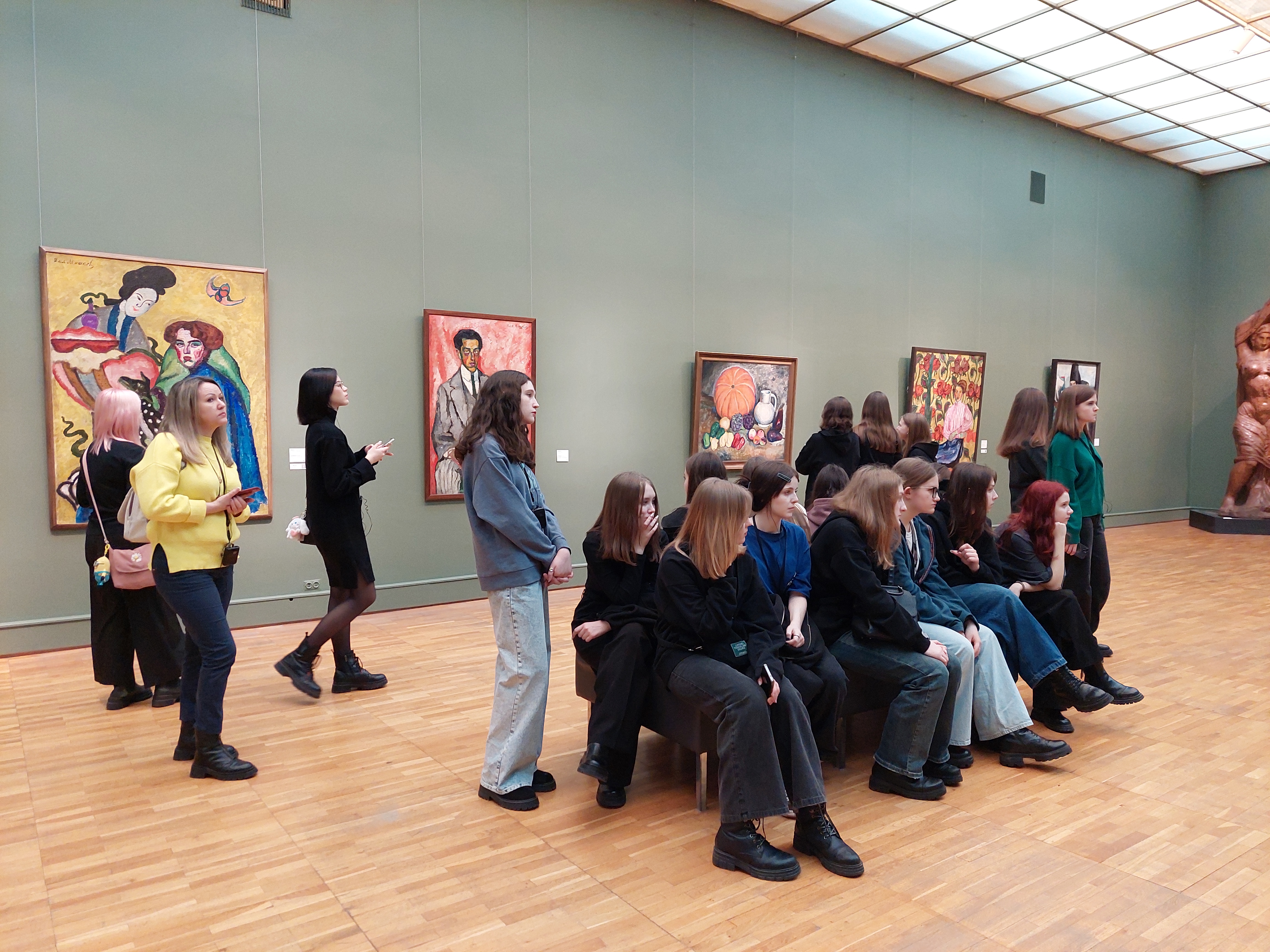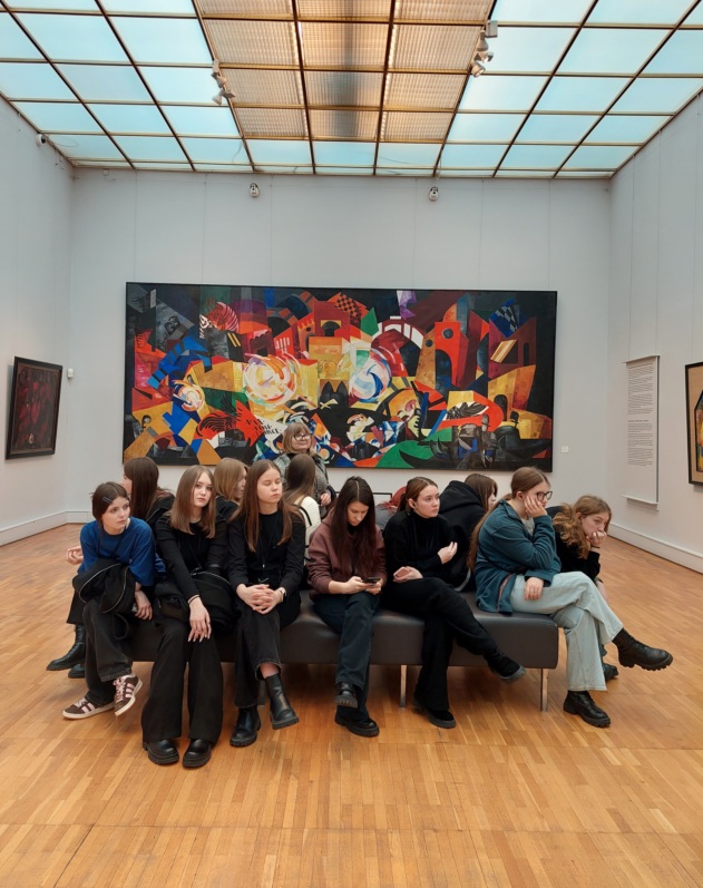 Кроме этого состоялась экскурсия по залам искусства 20 века, которая стала закономерным итогом завершающим курс по истории искусств в выпускном классе.Потрясающие работы художников русского авангарда, героические полотна социалистического реализма позволили учащимся погрузиться в атмосферу XX века.