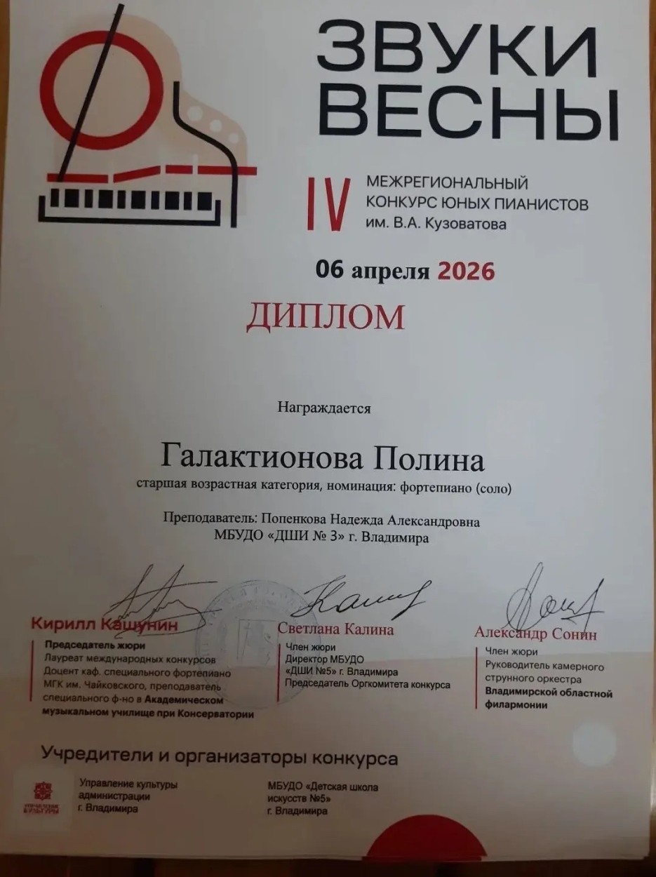 - Галактионова Полина - дипломант ( преп. Попенкова Н.А.).