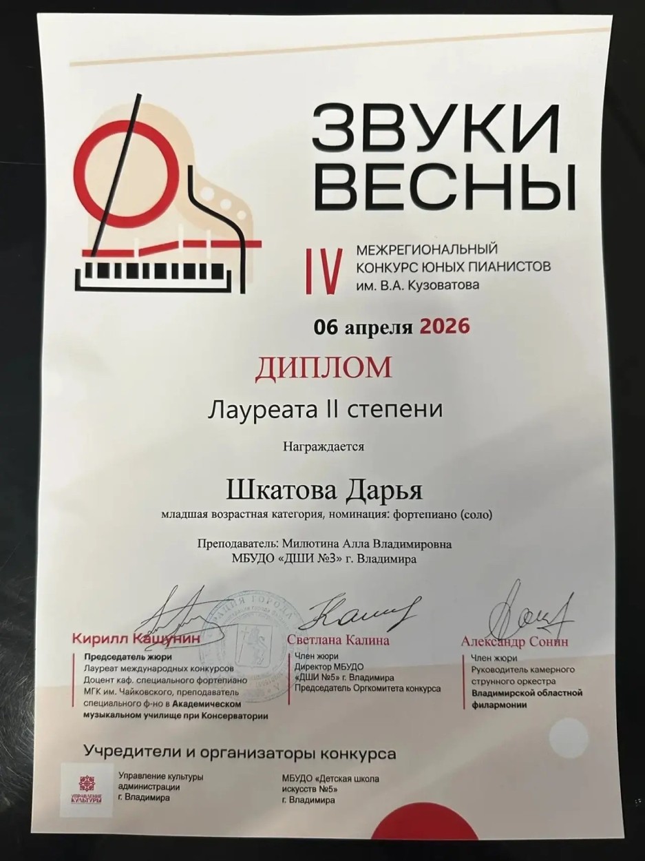 - Шкатова Даша 2 место ( преп. Милютина А.В.),