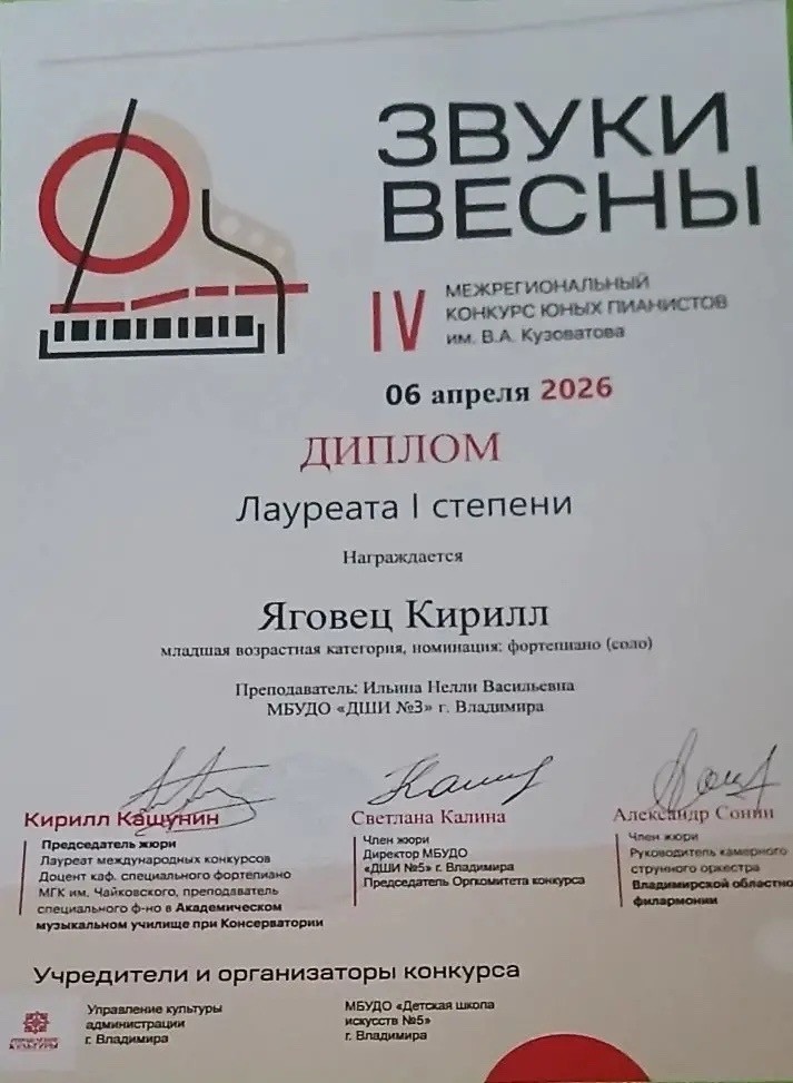 - Яговец Кирилл 1 место ( преп. Ильина Н. В.),