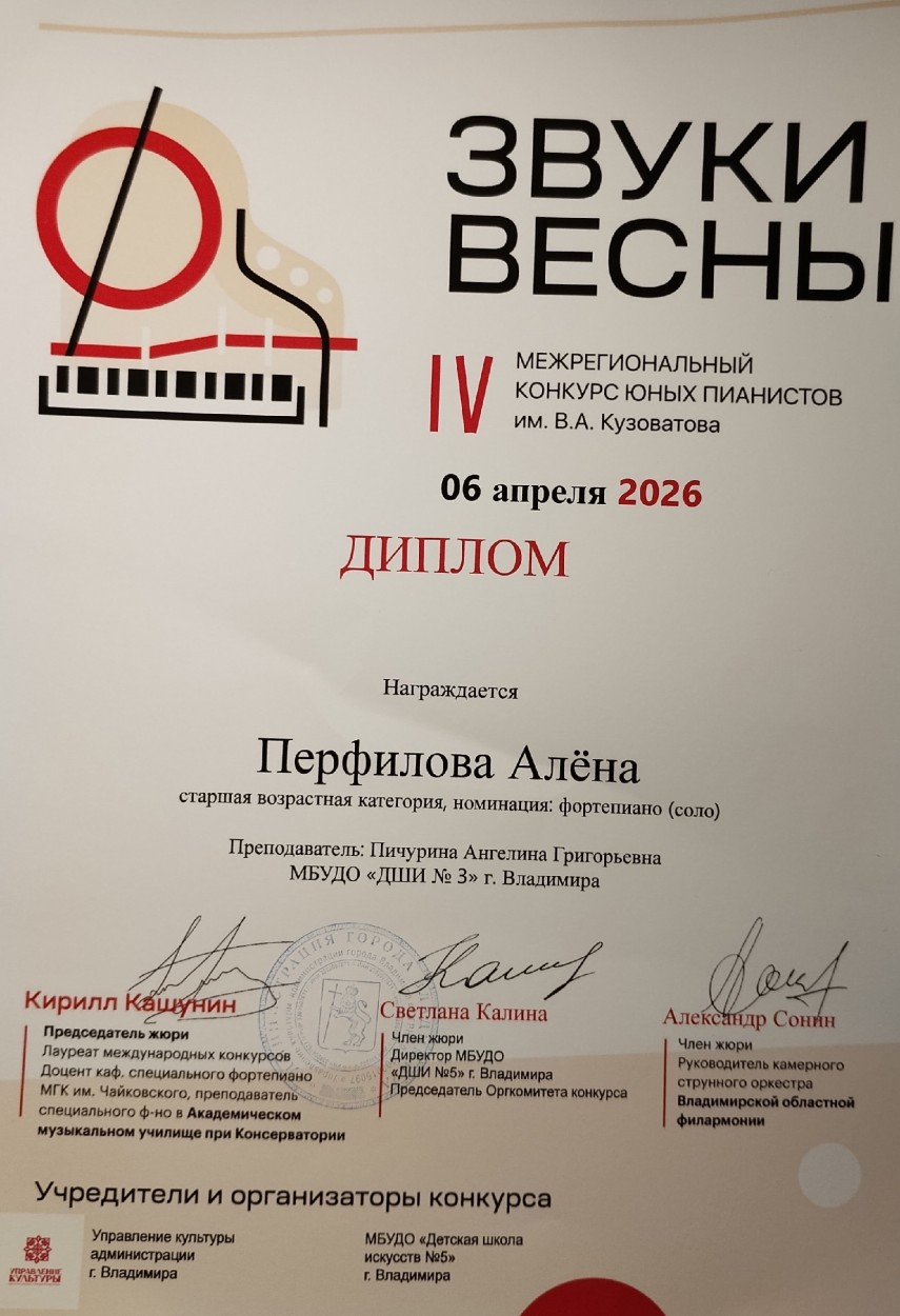- Перфилова Алена - дипломант (преп. Пичурина А.Г.),