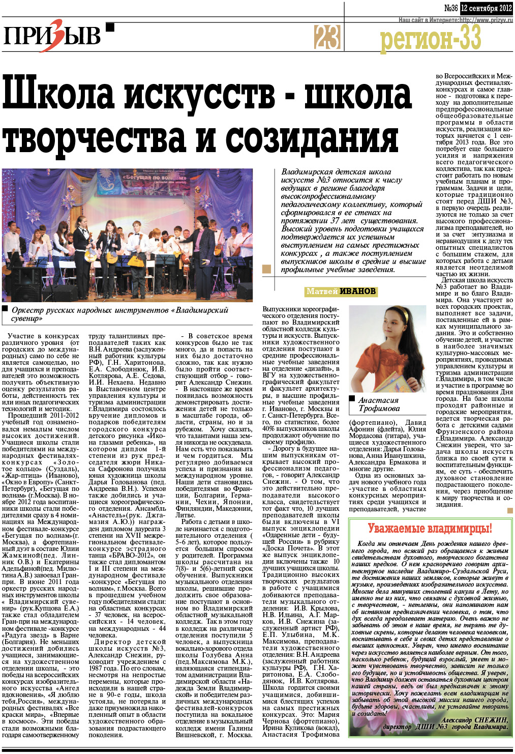 газета "Призыв" 12.09.2012