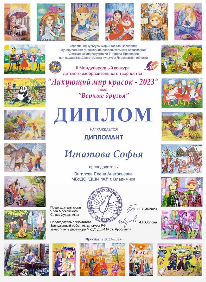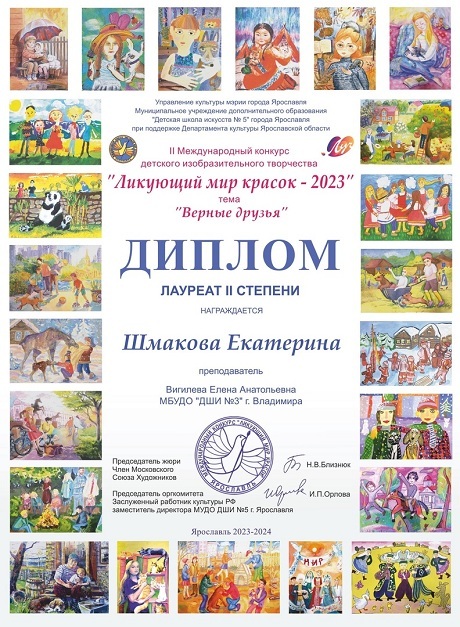 Завершился II Международный конкурс детского изобразительного творчества "Ликующий мир красок - 2023 " на тему "Верные друзья".
