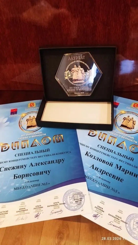 - Татьяну Борисовну Жолобову — администратора проекта и преподавателя ДШИ №3 г. Муром, за безупречную организацию IV Международного фестиваля -конкурса исполнителей русского романса и православной песни "Во имя семьи, любви и верности ", вдохновляющую атмосферу и веру в силу музыки, объединяющей поколения.