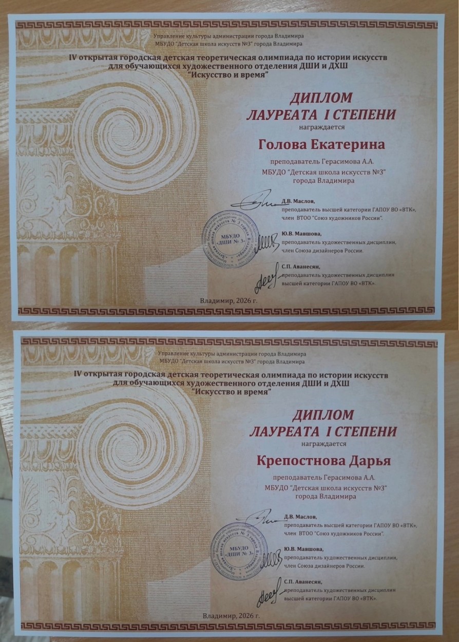 - Крепостнова Дарья и Голова Екатерина ( преп. Герасимова А.А.) - лауреаты I степени;