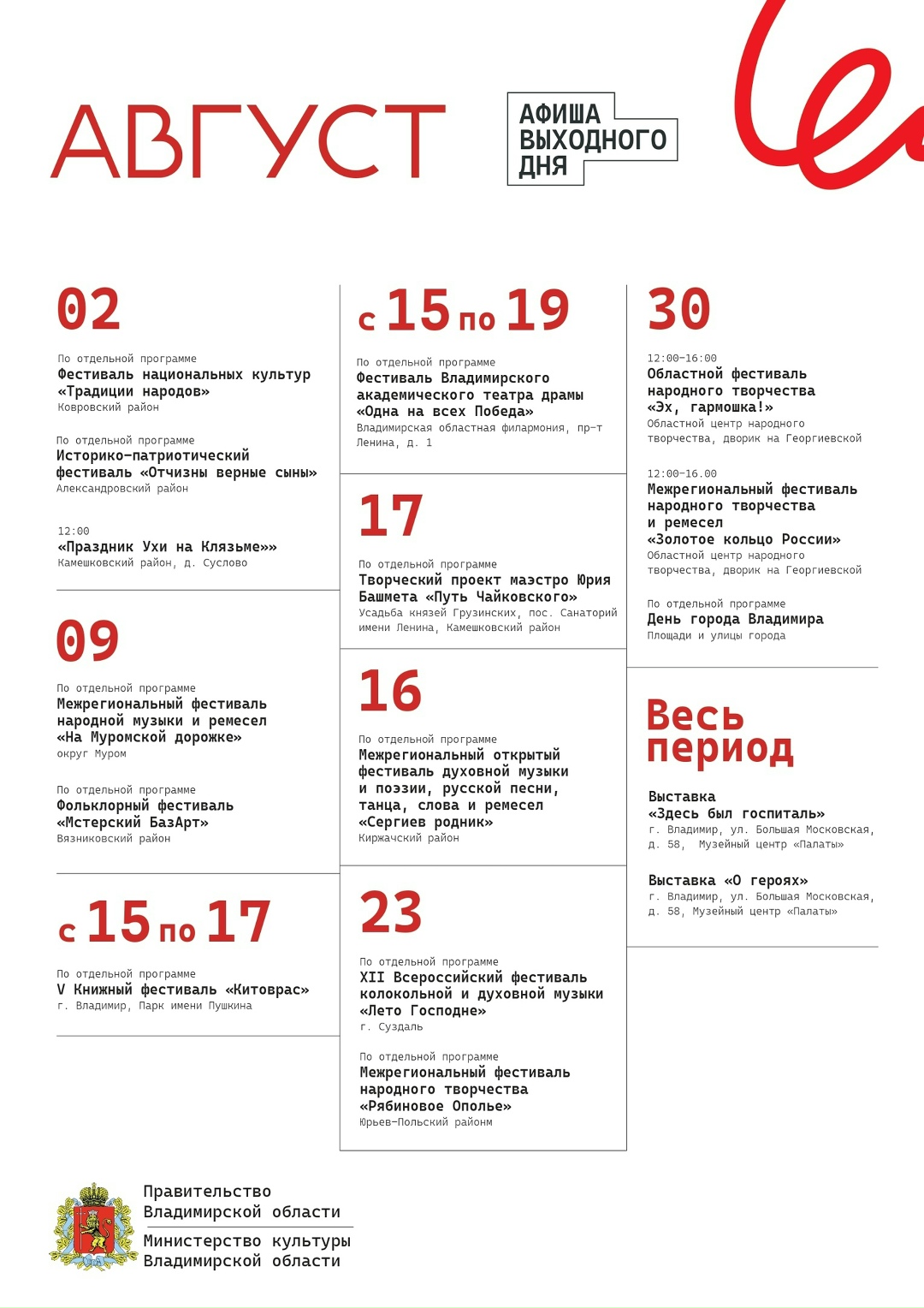 Каждые выходные приглашаем вас в учреждения культуры и на площадки региона на интересные культурные мероприятия - фестивали, концерты, театральные постановки. Будет интересно, гарантируем!