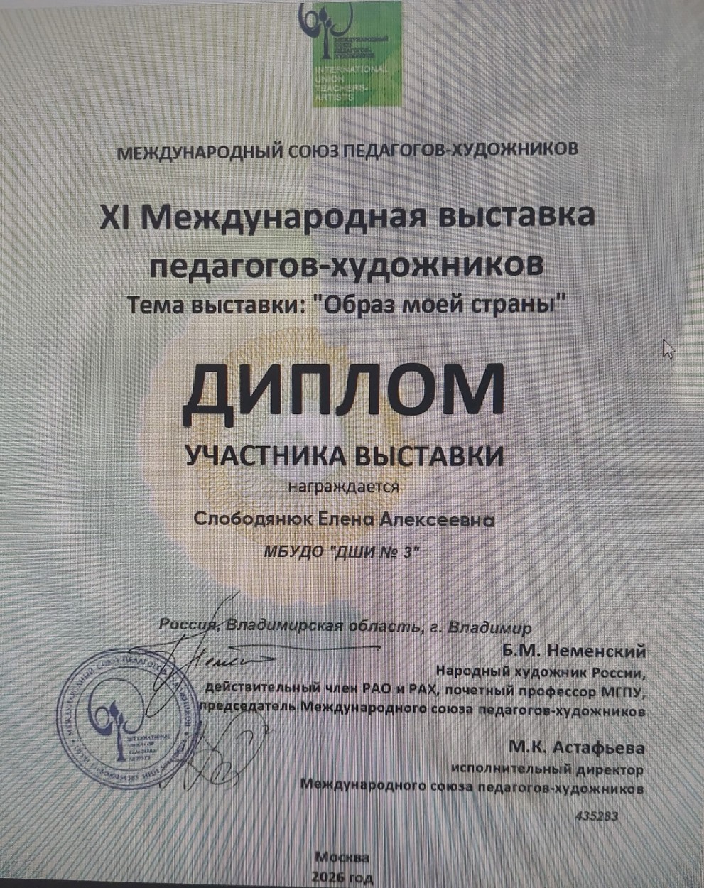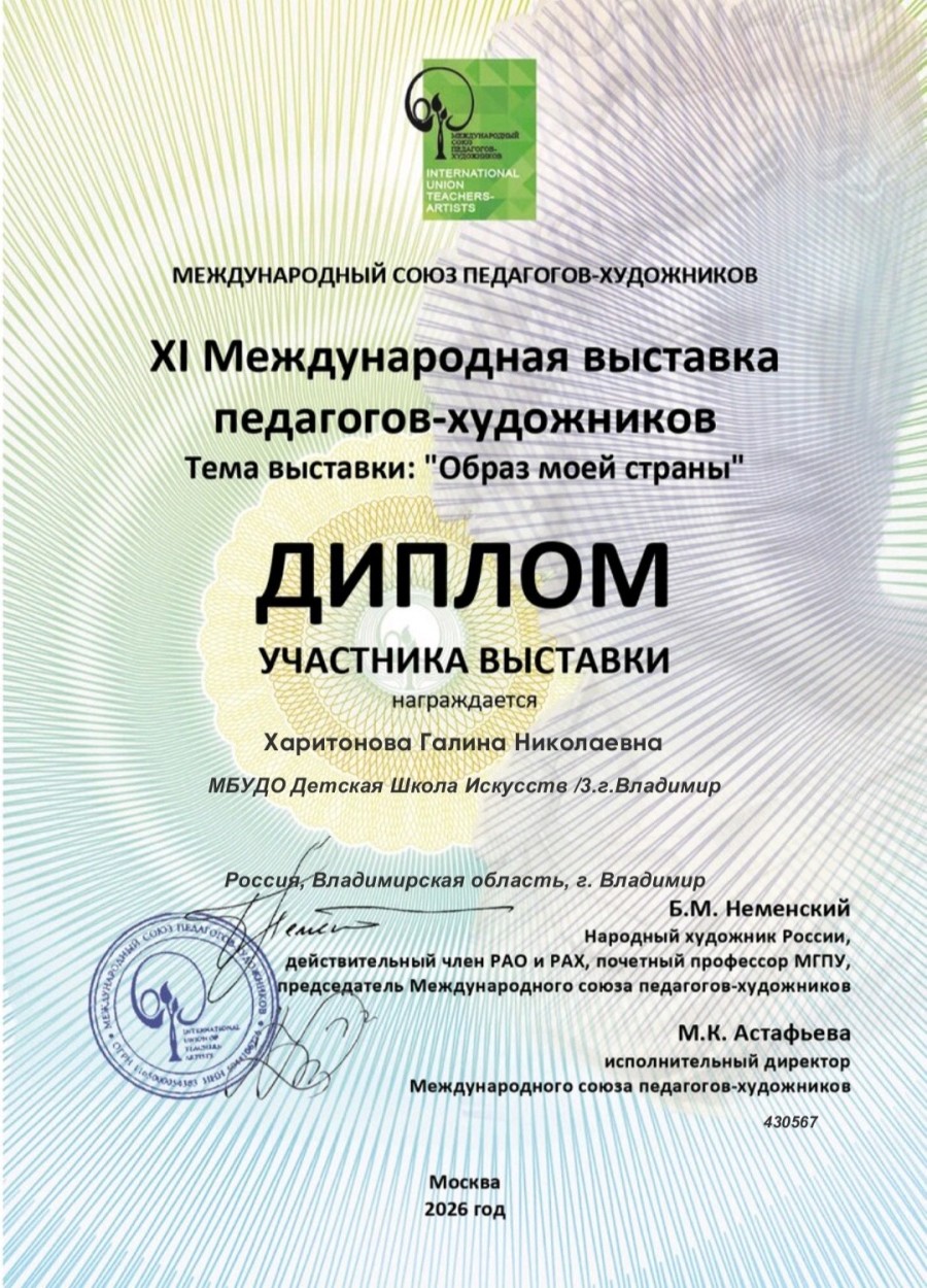 В рамках Международного форума педагогов-художников г. Москва. Состоялась 11 Международная выставка педагогов-художников, тема: "Образ моей страны".