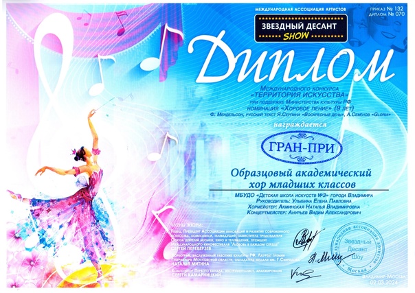 2 марта 2024 года в Городском Дворце культуры г.Владимира при информационной поддержке Министерства культуры Российской Федерации состоялся Международный конкурс «ТЕРРИТОРИЯ ИСКУССТВА».