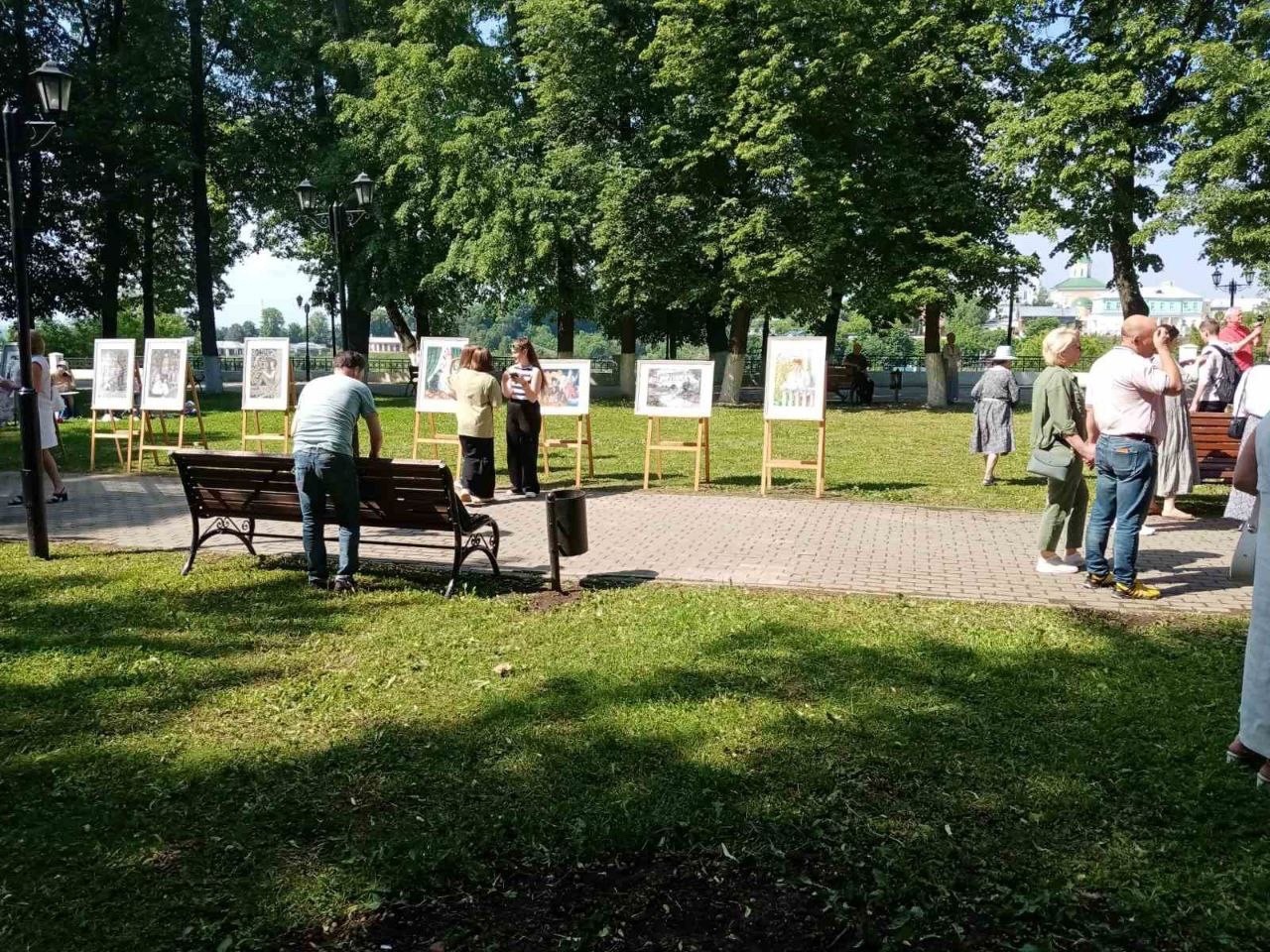 Автор скульптуры Игорь Черноглазов. На алле сквера на мольбертах были размещены иллюстрации к произведениям А. С. Пушкина, среди которых есть и работы наших учащихся, занимающихся на художественном отделении: