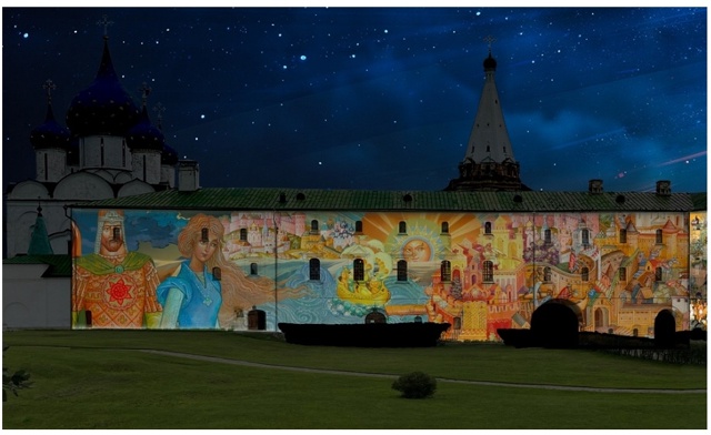 В этот уик-энд на древних стенах Суздальского кремля оживут традиционные ремёсла владимирщины. Гости увидят 17 масштабных проекций, рассказывающих о резьбе по камню, кружеве, лаковой миниатюре Мстёры, ювелирном искусстве и стекле Гусь-Хрустального.