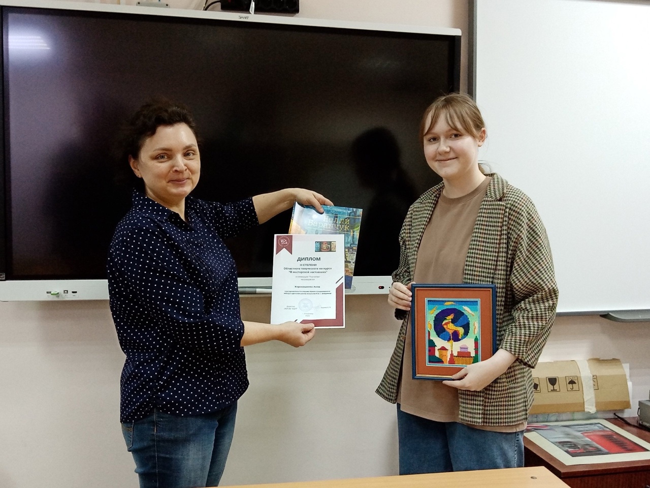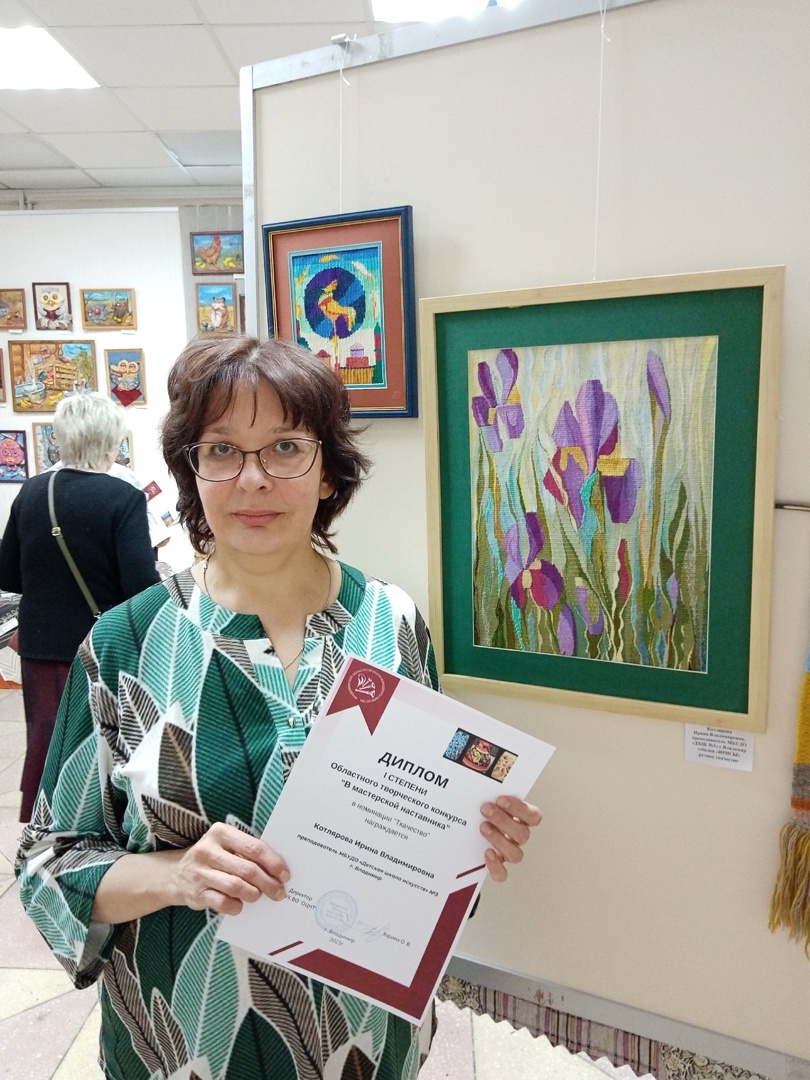 Особенно радостно, что ДШИ № 3 г. Владимира отмечена на таком масштабном конкурсе с огромным количеством профессиональных, великолепных работ, двумя победами: в номинации «Ткачество» преподаватель Котлярова Ирина Владимировна стала дипломантом I степени, а её ученица Коровашкина Анна — дипломантом III степени.