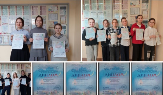 В этом учебном году наши ученики приняли участие и победили в Арт-акциях "Моя семья", посвященной году семьи - Корнилова Радомира, Карякина Алина, Федяева Варвара, Арт-акция " Новогодняя суета", посвященной традициям зимних праздников - Шаипкина Анастасия, Метлицкие Вера и София, Бриль Мария.
