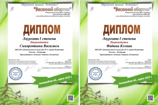 Поздравляем Сывороткину Василису и Фадину Ксению с дипломами Лауреатов I степени!
