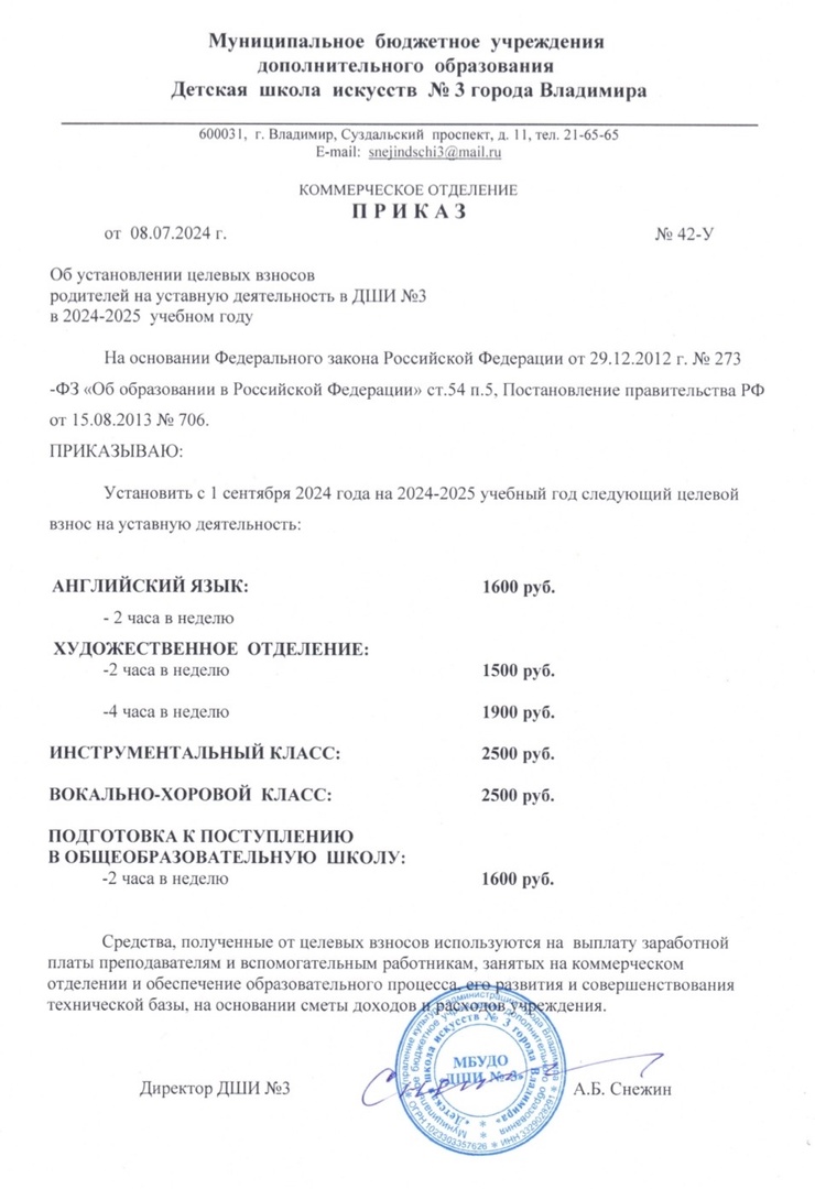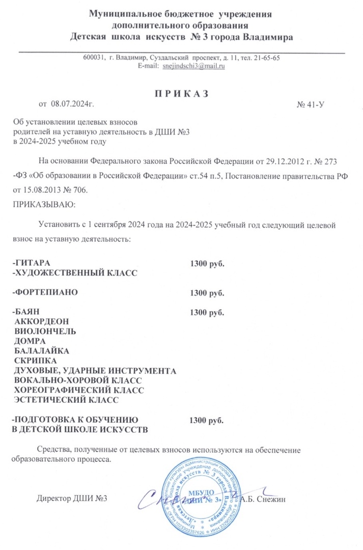 Установление целевых взносов за обучение на 2024-2025 учебный год