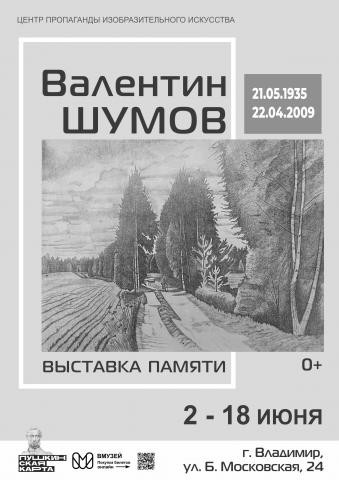 Со 2 по 23 июня 2023 года в Центре пропаганды изобразительного искусства пройдет выставка, посвященная памяти известного графика и живописца, представляющего город Владимир, Валентина Шумова (1935–2009) .