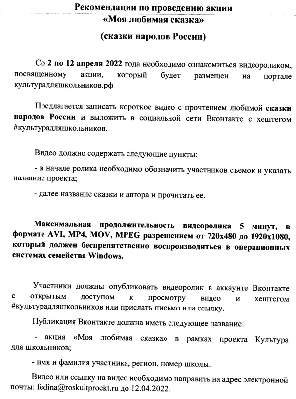 Всероссийская акции «Моя любимая сказка»
