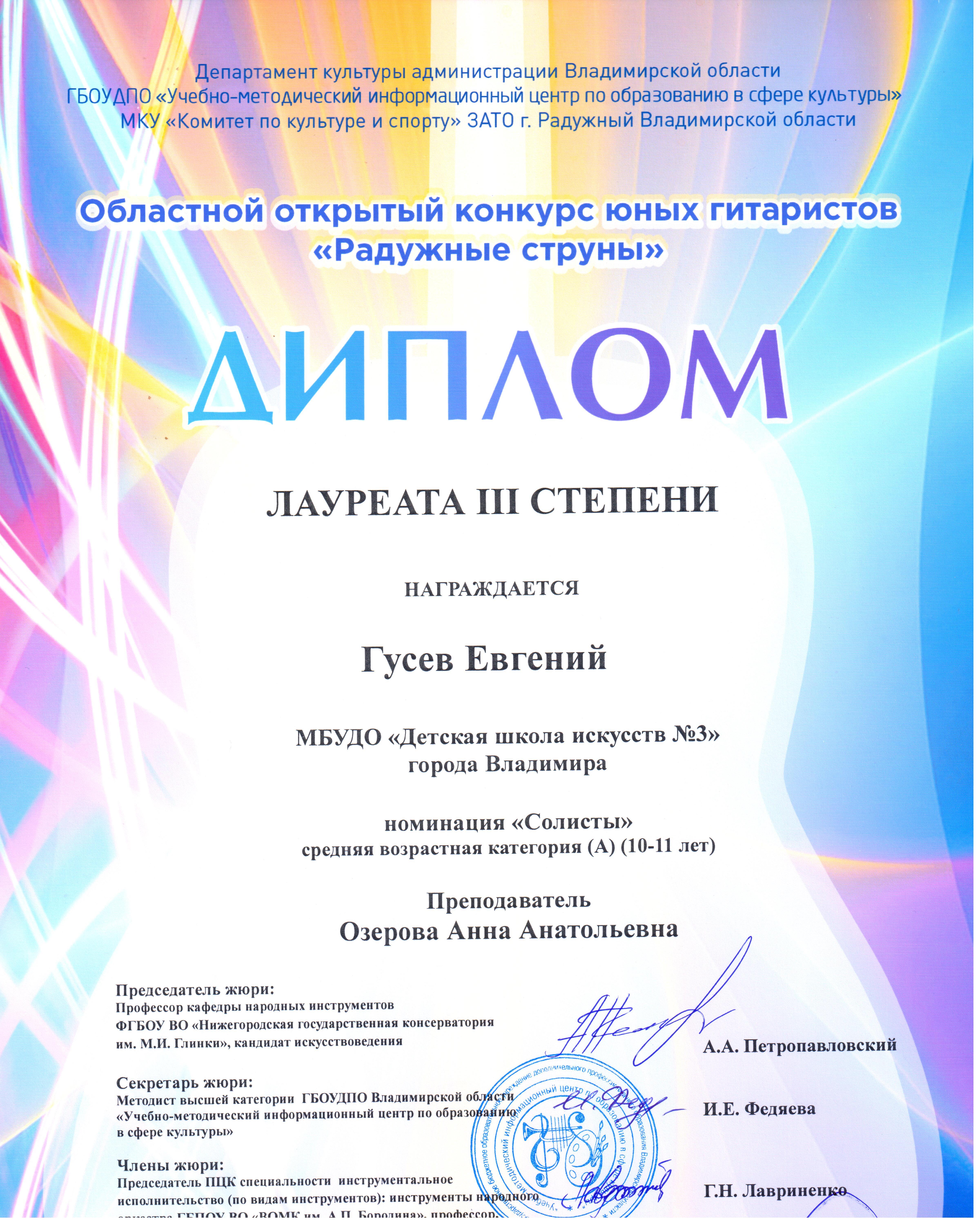 2.Гусев Евгений – преподаватель Озерова А.А.