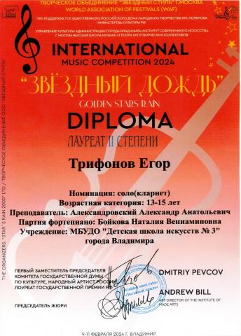 11.02.2024 г. Международный конкурс «ЗВЁЗДНЫЙ ДОЖДЬ Владимир 2024»