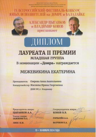 13-16.11.2024 г. IX Всероссийский фестиваль-конкурс юных исполнителей на домре и балалайке «Александр Цыганков и Владимир Конов приглашают»